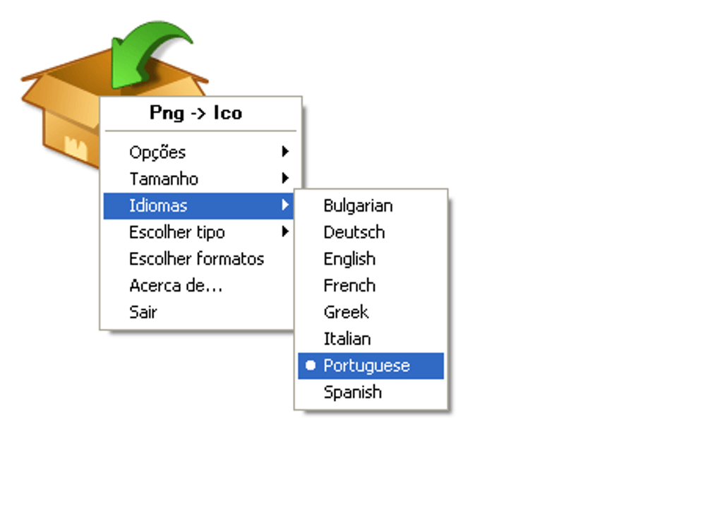 Se você prefere ter maior controle sobre o processo, o ToYcon disponibiliza funcionalidades extras. Clique na caixa com o botão direito do mouse para abrir o menu. Determine o tamanho final, o nível de qualidade e a pasta de destino para guardar os ícones criados.